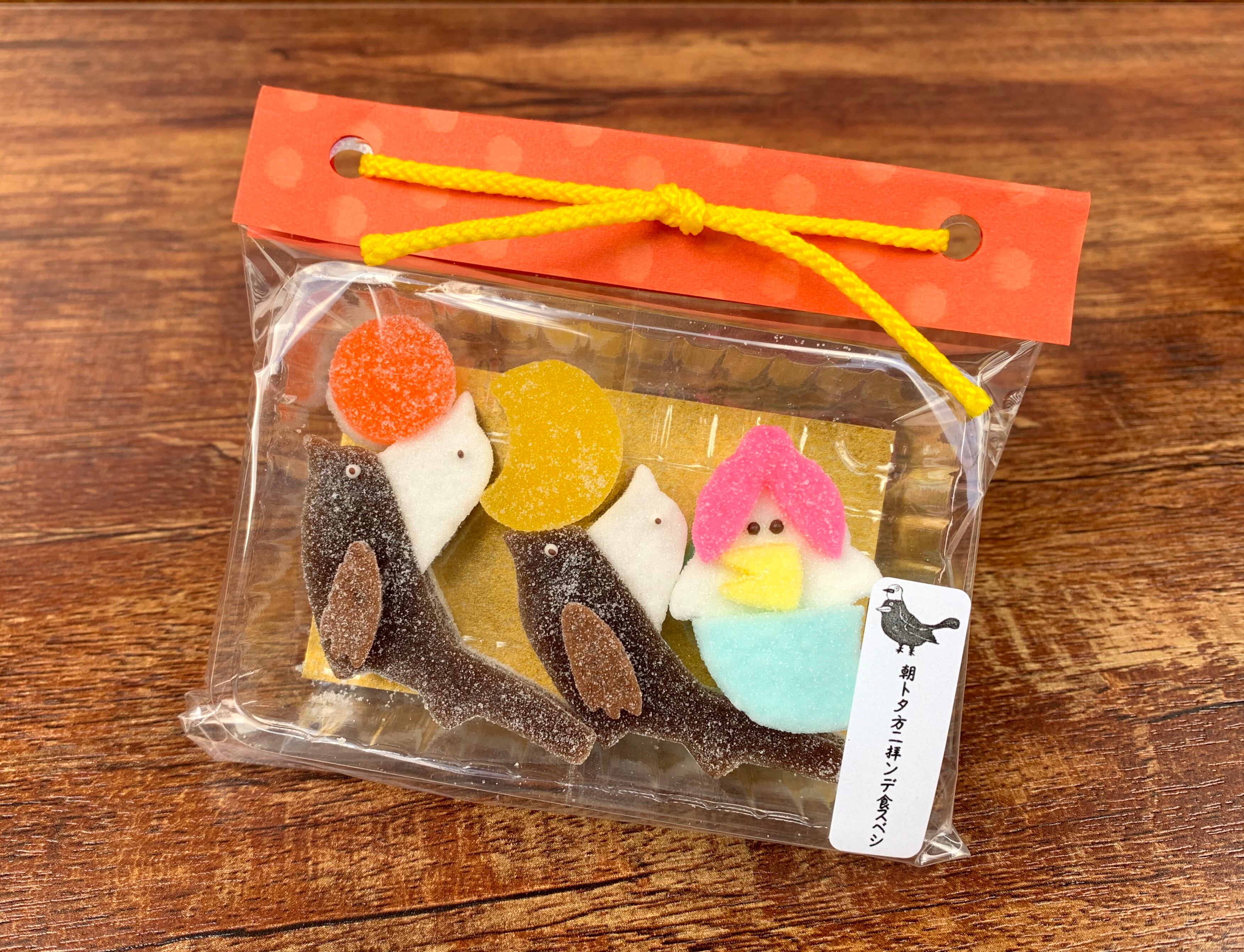 ヨゲンノトリの形をしたゼリー菓子、妖菓子あやかしです。